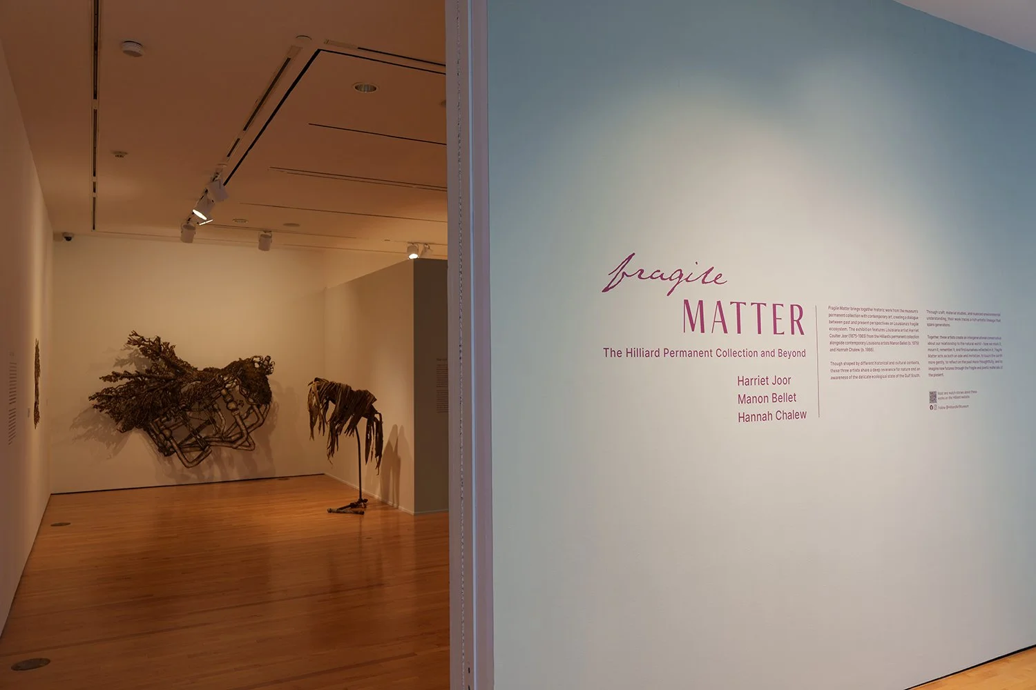Fragile Matter brings together historic work from the museum’s permanent collection with contemporary art, creating a dialogue between past and present perspectives on Louisiana’s fragile ecosystem. The exhibition features Louisiana artist Harriet Coulter Joor (1875-1965) from the Hilliard’s permanent collection alongside contemporary Louisiana artists Manon Bellet (b. 1979) and Hannah Chalew (b. 1986).